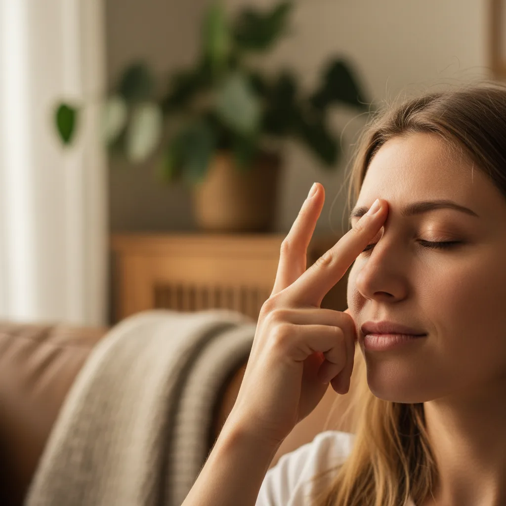 - Presse le point entre tes deux sourcils avec ton pouce