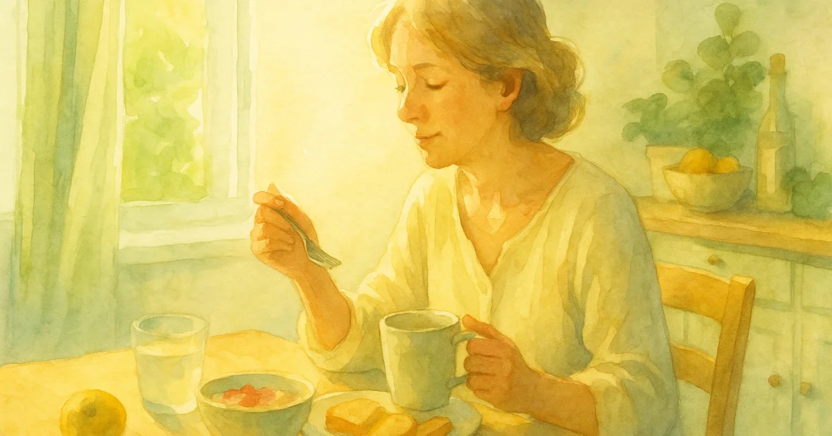 Mon petit rituel : une tisane fenouil-menthe après le déjeuner, bien chaude. Je la bois lentement, en respirant profondément. Double effet : les plantes qui agissent, et le moment de calme qui fait du bien.