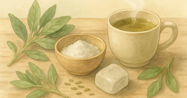 Astuce de Mamie Ajoutez une pincée de menthe poivrée dans votre infusion de sauge. Le goût est plus agréable et la menthe renforce l'effet rafraîchissant.