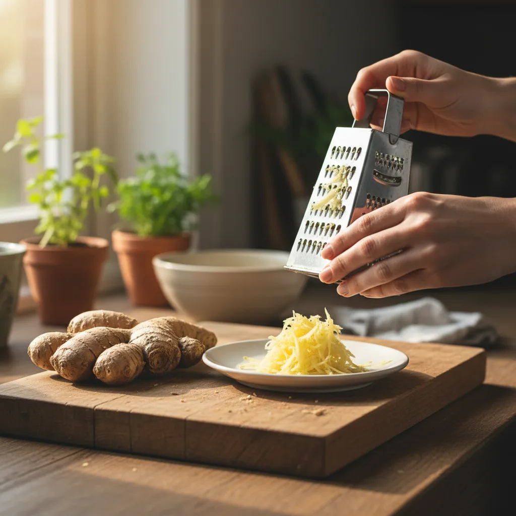 - Râpe 1 cm de gingembre frais